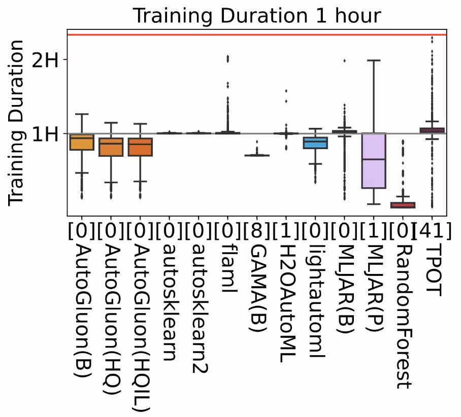 AUTOGLUON emerged as a consistent leader in model performance throughout our benchmarks (in among top 10 frameworks, still need to test for 11th-15th similarly on all datasets). Acknowledging the critical importance of inference time in practical applications, we found considerable variance among the frameworks based on the study.