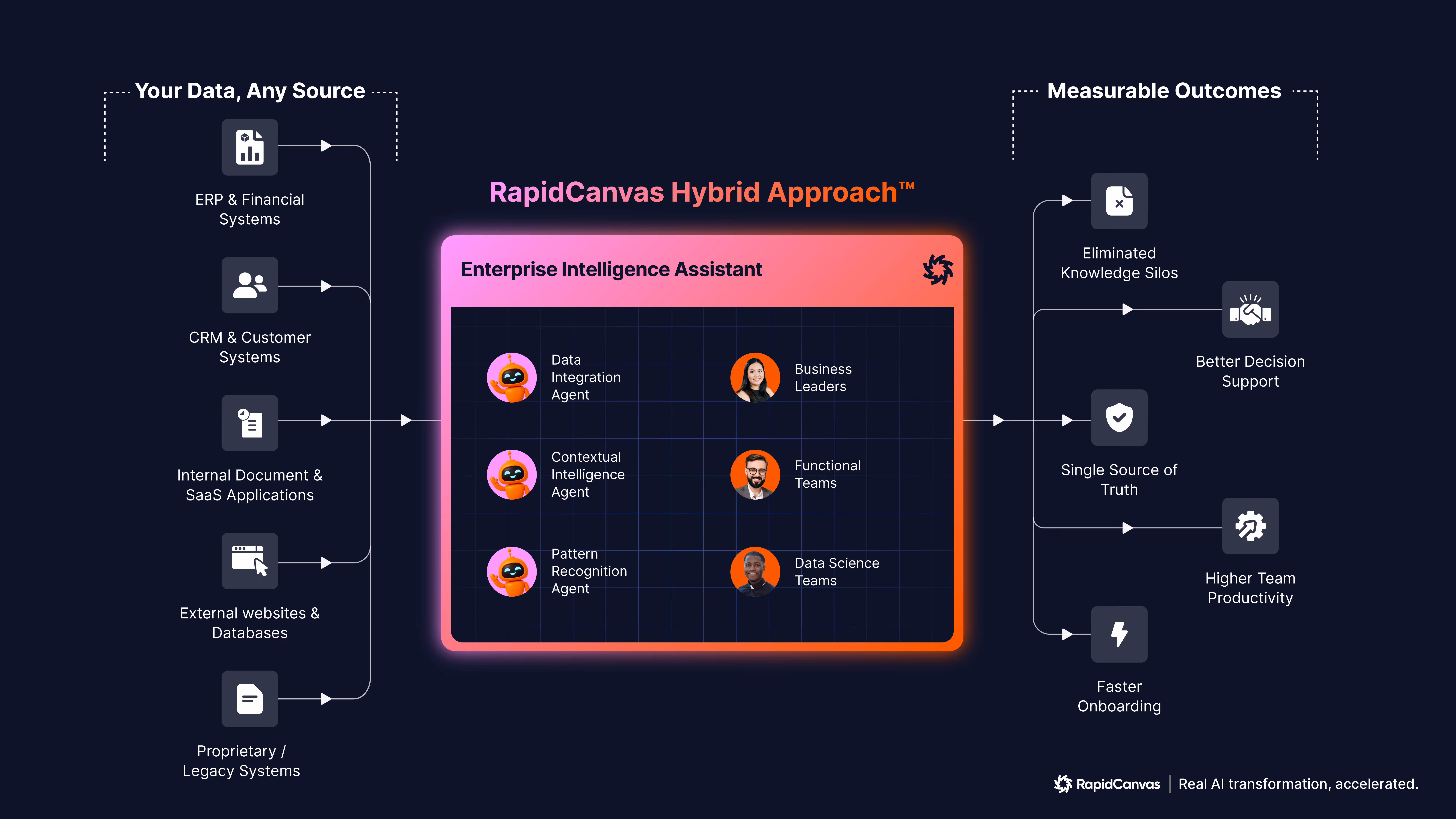 It connects to systems like ERP, CRM, data lakes, internal APIs, and legacy platforms. The system is model-agnostic and flexible, so it can work with existing enterprise infrastructure without replacing it.