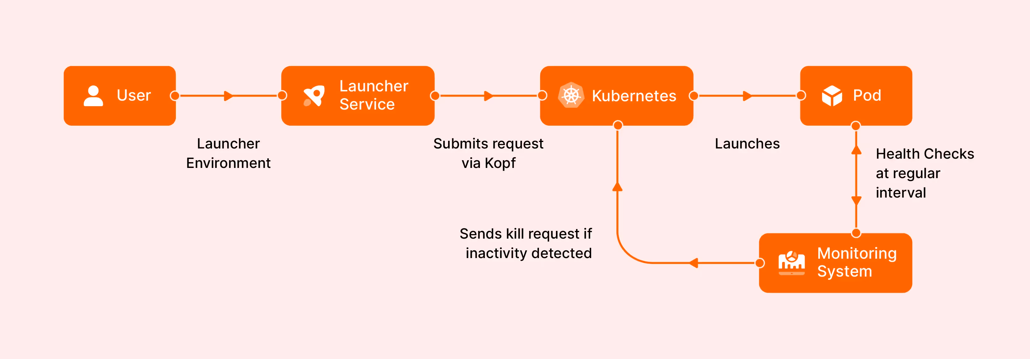 Environment Launch via Launcher Service: When a request to launch an environment is made, it is directed to our launcher service.