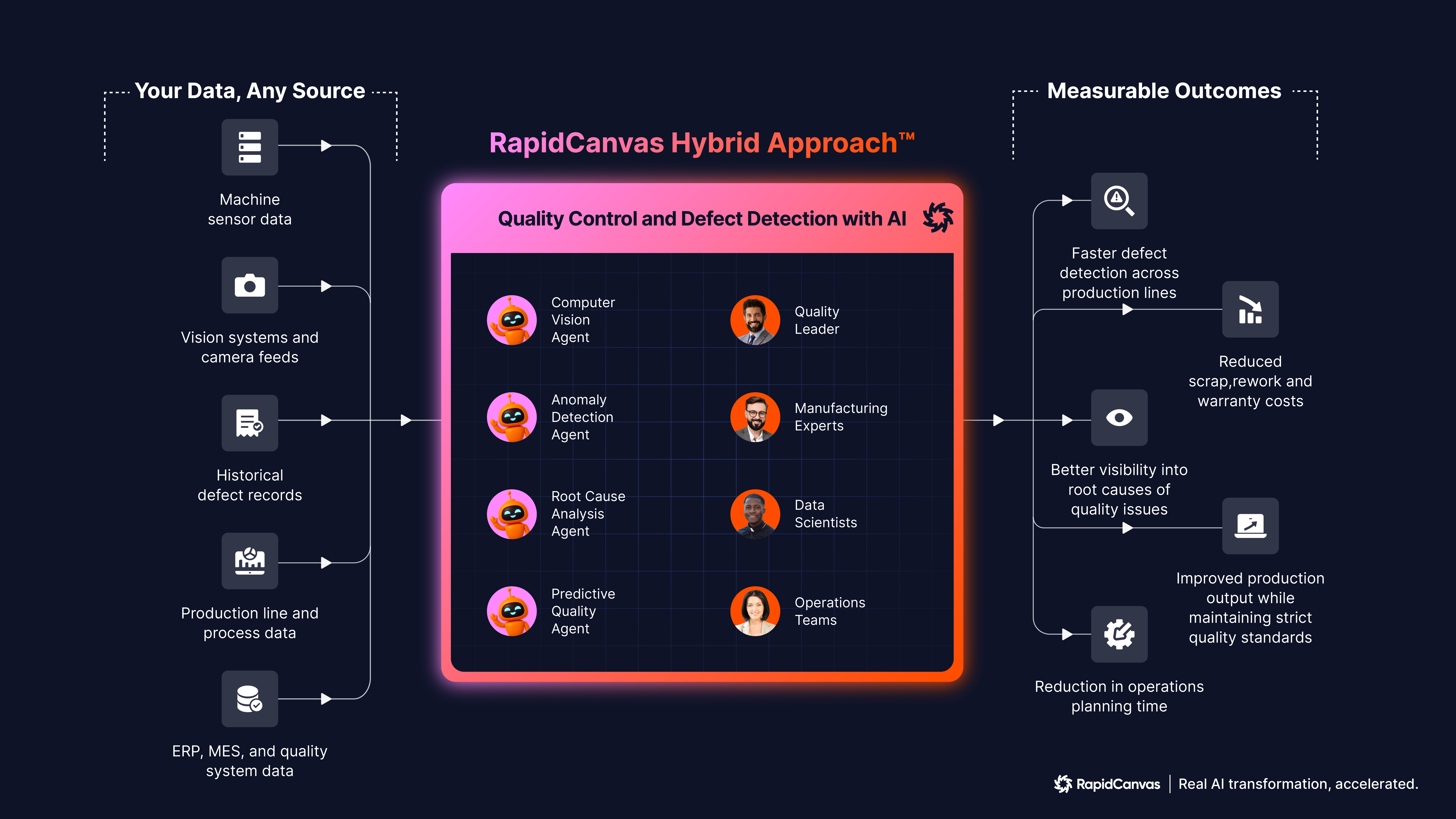 Yes. AI can help manufacturers improve quality while also increasing throughput by identifying bottlenecks, optimizing workflows, improving scheduling, and detecting defects earlier in the production process. In one RapidCanvas manufacturing engagement, AI helped increase production output by 20% while reducing costs by more than $1M.